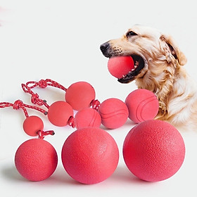 Bóng cao su có kèm dây thừng cho cún bạn vui đùa, cún có thể gặm chơi, hoặc dùng trong huấn luyện, bạn ném quả bóng ra xa và cún sẽ chạy tới nhặt quả bóng về, tạo tương tác giữa bạn và cún