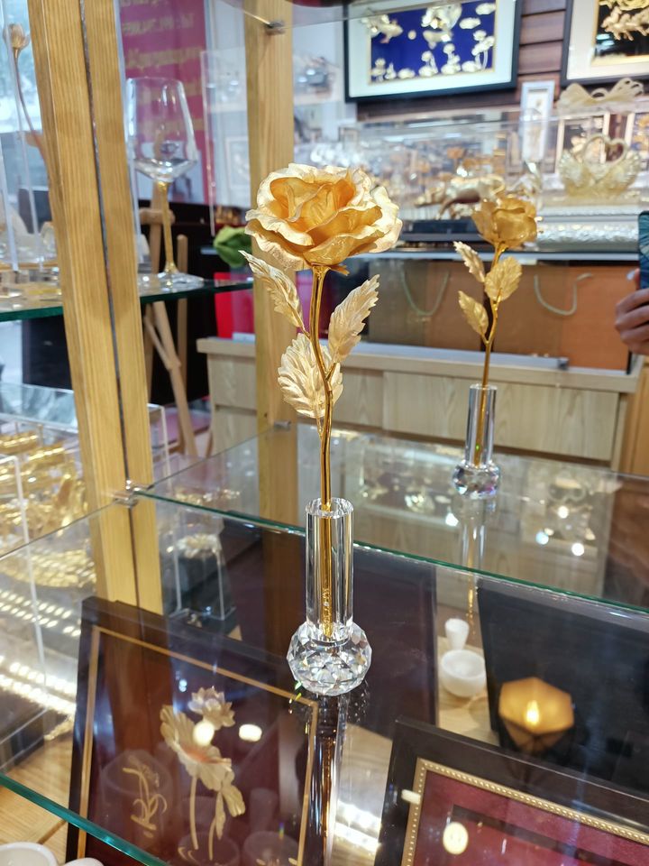 Mỗi bông hoa hồng đều được tạo ra dưới đôi bàn tay lành nghề và tỉ mỉ của các nghệ nhân, với nhiều công đoạn khác nhau, tương đương với 4 ngày làm thủ công từng cánh hoa, từng chiếc lá mong manh rồi kết hợp tất cả lại, để tạo nên một bông hoa tuyệt tác của thiên nhiên. Hoa hồng dát vàng – là một món quà độc đáo và đầy ý nghĩa để bạn dành tặng cho ngày lễ tình nhân, hoặc bạn cũng có thể dành tặng cho người mẹ yêu thương của mình vào ngày sinh nhật, ngày kỷ niệm hay ngày cưới… hoặc bất kỳ một dịp đặc biệt nào đó. Thông tin sản phẩm  Thương hiệu: MT Gold Art Bộ sưu tập:  Bó hoa hồng dát vàng Chất liệu: Dát vàng 24k Dịp tặng quà: Quà sinh nhật, quà kỷ niệm khách hàng, quà 20/11, quà 20/10, quà 8/3, quà cưới, …. Quà tặng cho: sếp, khách hàng nước ngoài, đối tác, vợ, mẹ, bạn gái,… Kích thước : 25cm Chủng loại: Trang trí để bàn Hộp đựng: Sang trọng, làm quà tặng