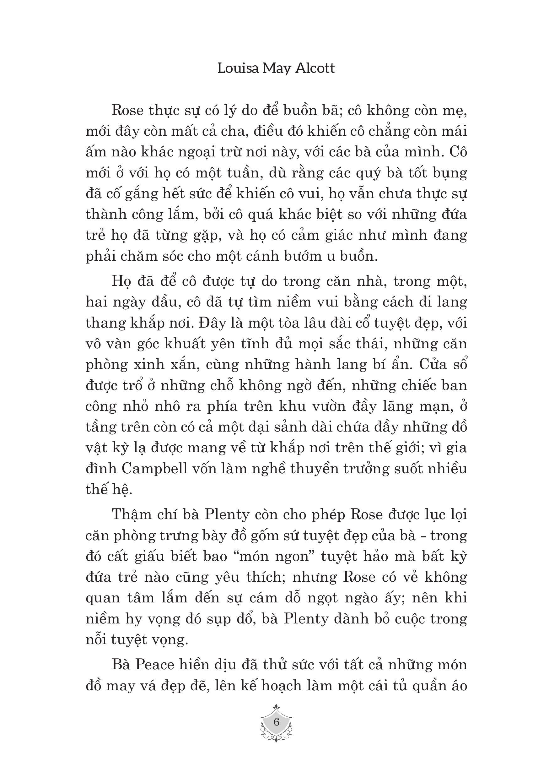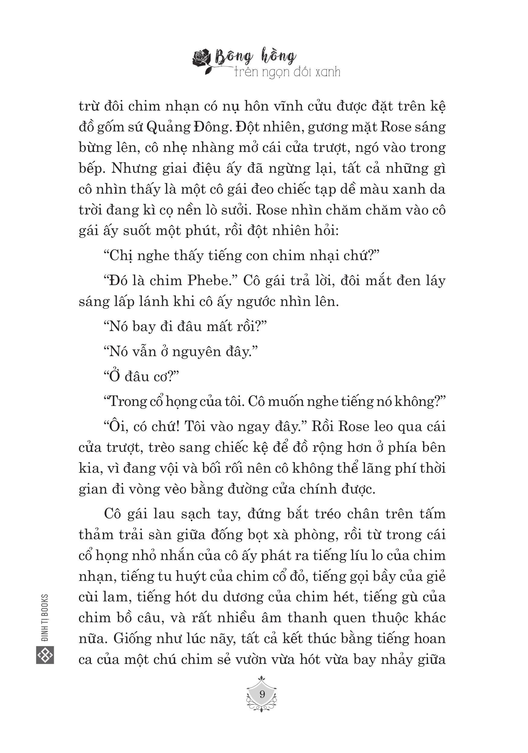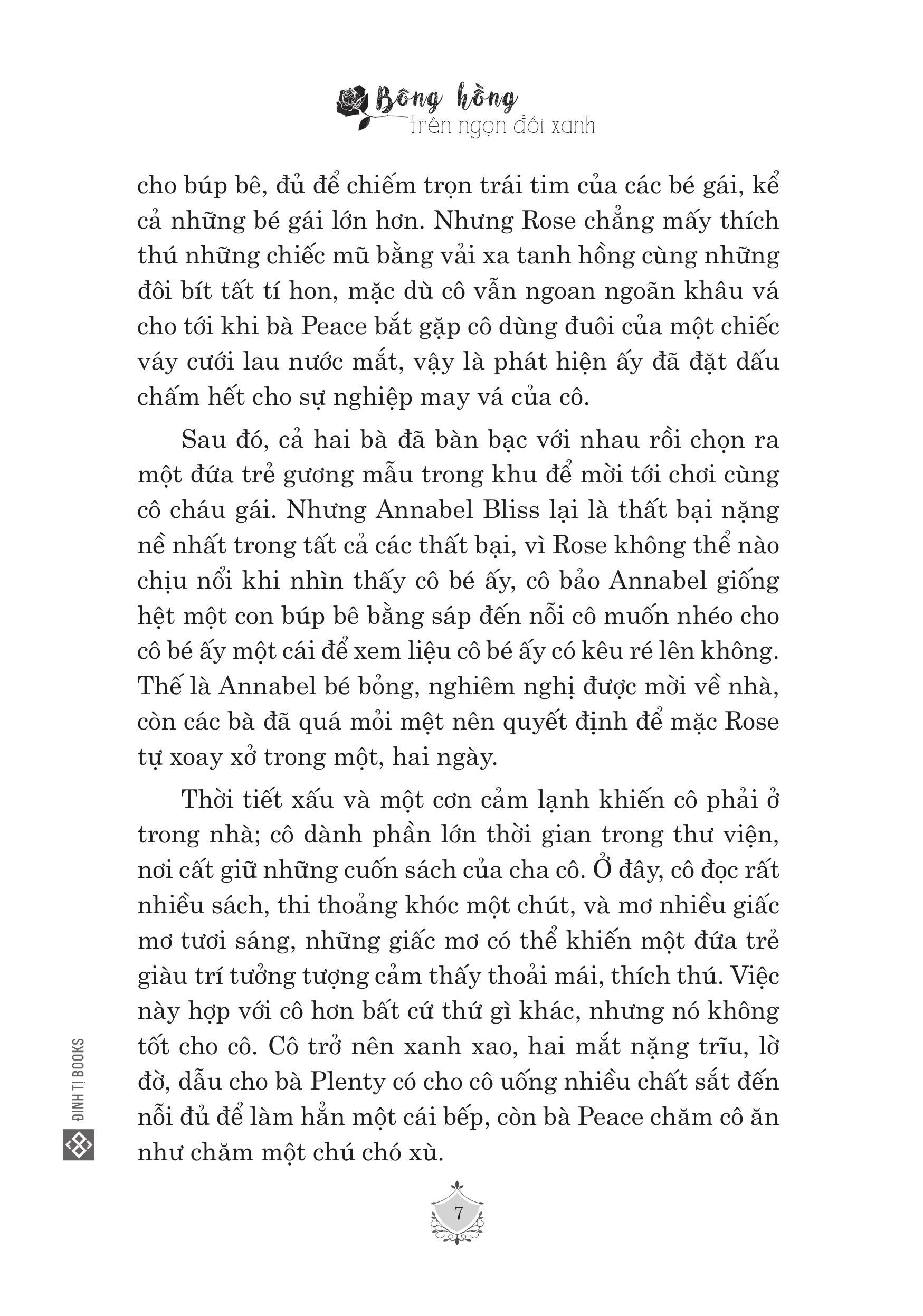Với tư tưởng tiến bộ cùng văn phong đơn giản nhưng không kém phần hài hước, Louisa May Alcott đã tạo nên một tác phẩm tuyệt vời khiến biết bao thế hệ độc giả say sưa theo dõi. Thông qua quá trình hòa nhập với cuộc sống mới của cô bé Rose rụt rè, nhút nhát bên những người bà, người thím cổ hủ cùng những người anh em họ ồn ào, hiếu động, Bông hồng trên ngọn đồi xanh đã đem đến một câu chuyện thú vị, hấp dẫn về tình bạn và tình thân. Mang trong mình những giá trị nhân văn sâu sắc, tác phẩm xứng đáng được coi là một kiệt tác dành cho các bạn đọc nhỏ tuổi .