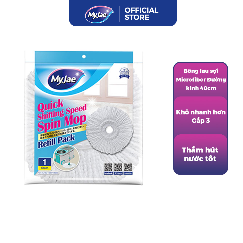*Thông số kỹ thuật* - Thương hiệu: MyJae - Tên sản phẩm: Bông lau kháng khuẩn cho Cây lau nhà tự vắt kèm thùng 2 ngăn MyJae - Kích thước: 33 cm x12cm - Màu