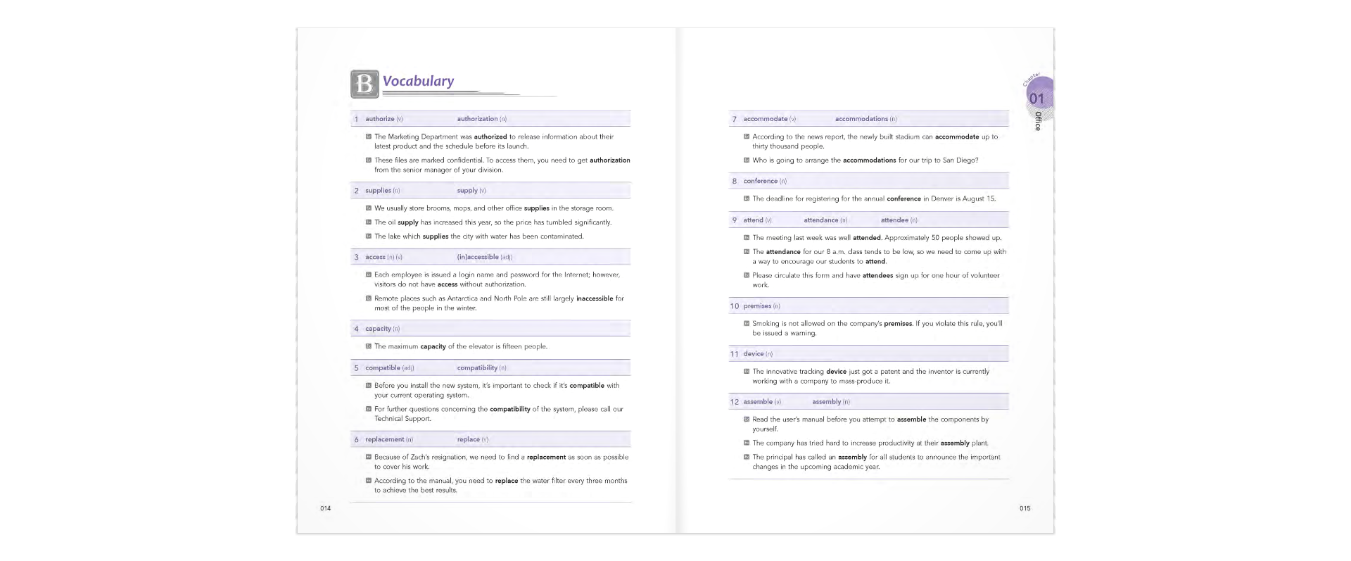 The content of this book is designed around six topic areas which most frequently appear in the TOEIC test: office, cultural events, personnel, general business, general travel, and dining out. In every chapter, you will find contextualized essential vocabulary coupled with class activities to build up and consolidate the listening and reading skills. The sequence of “Warm-up”, “Vocabulary”, “Listening”, “Speaking”, “Grammar”, “Reading” and “Writing” is maintained throughout the six chapters of the book.