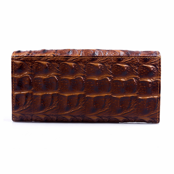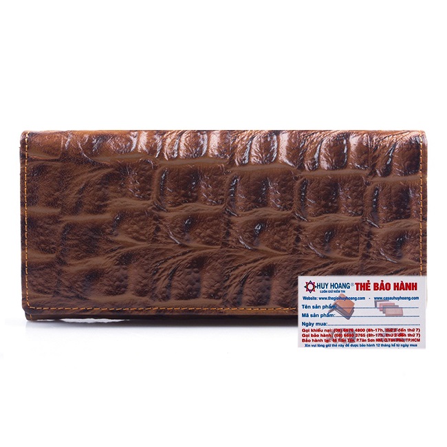 Ví/Bóp nữ da bò vân cá sấu Huy Hoàng 2 gấp màu nâu 3117