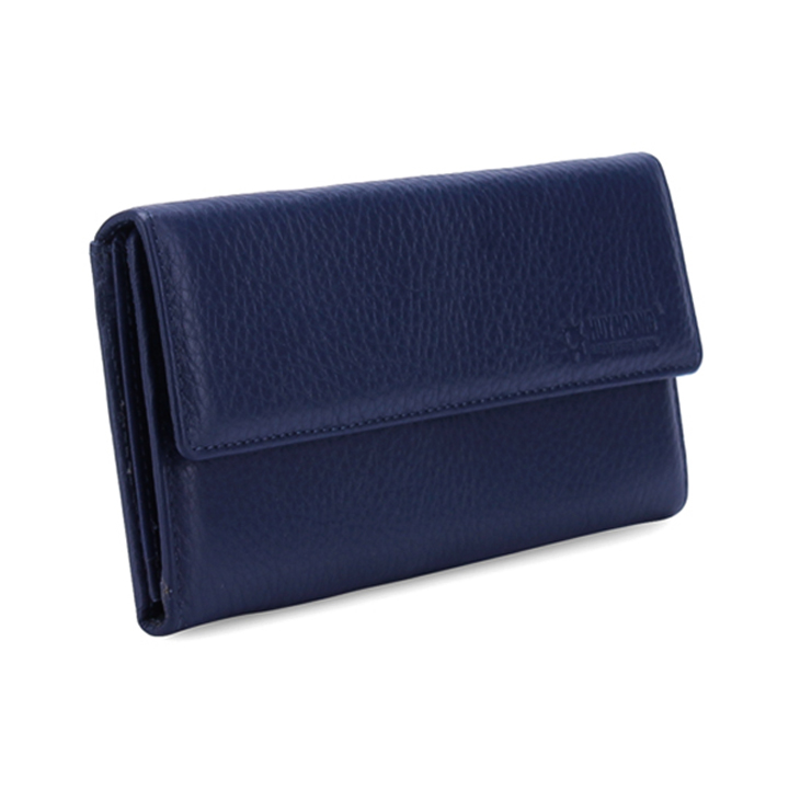 Ví/Bóp nữ da bò Huy Hoàng 3 gấp lửng màu xanh dương 3160
