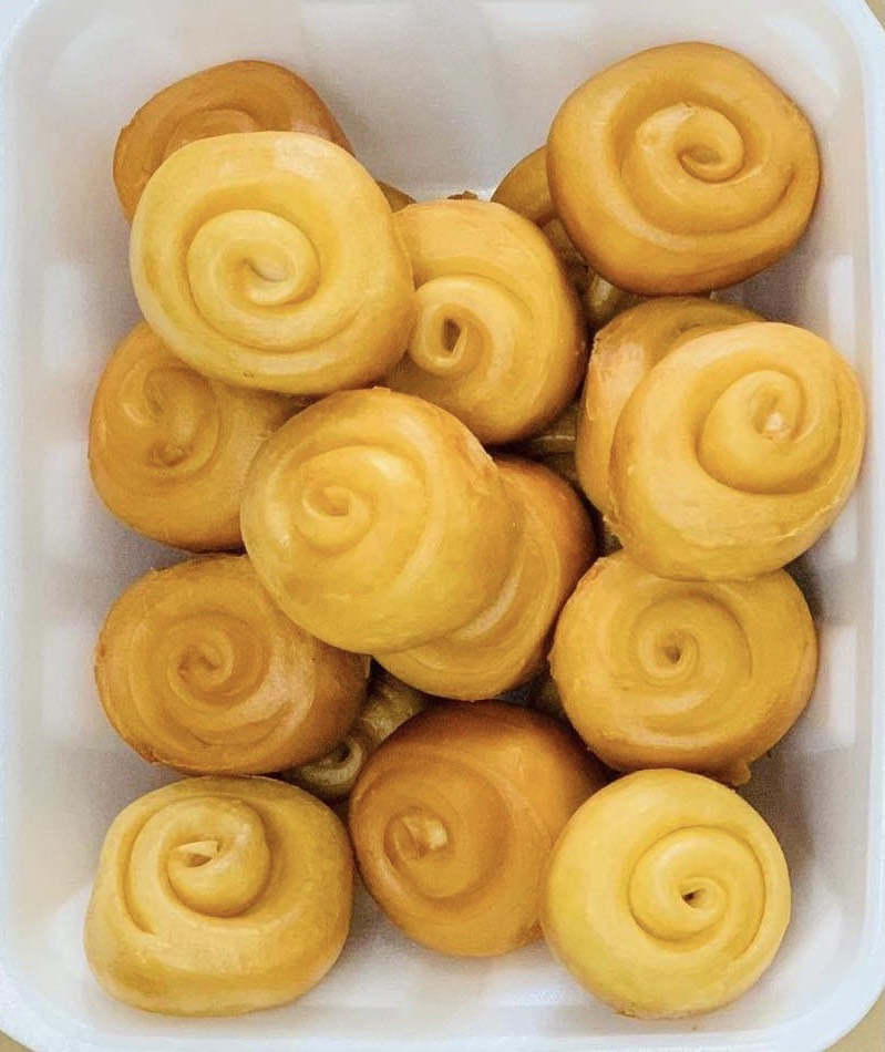 -Lấy ra cắt từng cục bột tùy thích, nhồi – cán từng cục bột, làm nhân, tạo hình bánh, đặt bánh lên giấy lót. Rồi đậy kín, ủ tiếp 20 phút, bánh sẽ nở lên thêm.