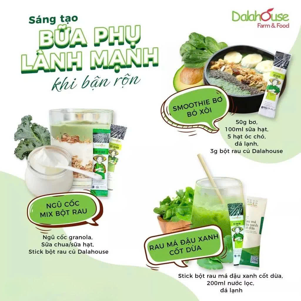 Bột rau của DalaHouse sấy lạnh kiểm soát từ khâu trồng trọt đến chế biến bằng công nghệ Nhật Bản Đạt chứng nhận VSATTP Không phụ gia, không chất bảo quản. ️Hệ thống máy móc
