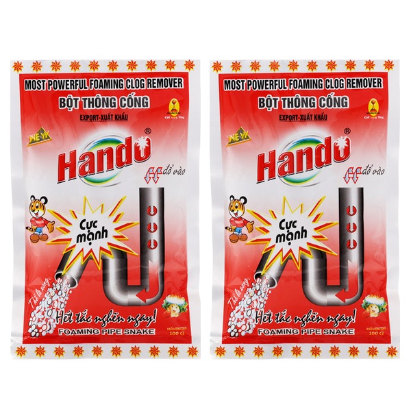 - Bột thông cống Hando 100g xuất khẩu với công thức tiên tiến, các thành phần hóa học chuyên dụng, độ tẩy cực mạnh sẽ xoáy tan mọi cặn bẩn trong đường ống một cách hiệu quả.