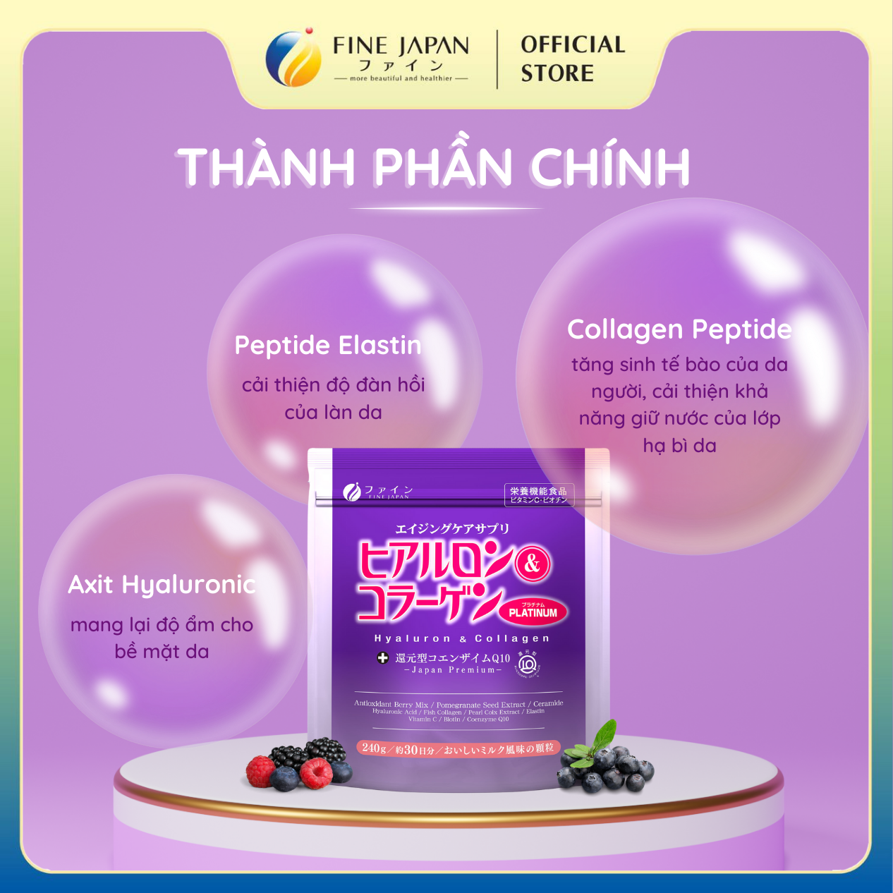 ✨Bột uống Hyaluron & Collagen + Ubiquinol Platinum Cao Cấp FINE JAPAN hạn chế lão hóa da gói 240gr