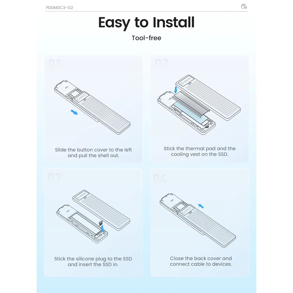 Tính năng nổi bật của Hộp ổ cứng SSD ORICO AXM2S-G2-V1-GY-BP - Tốc độ truyền dữ liệu cực nhanh 10Gbps - Với chuẩn kết nối USB 3.2 Gen 2 Type-C, sản phẩm đạt tốc độ truyền