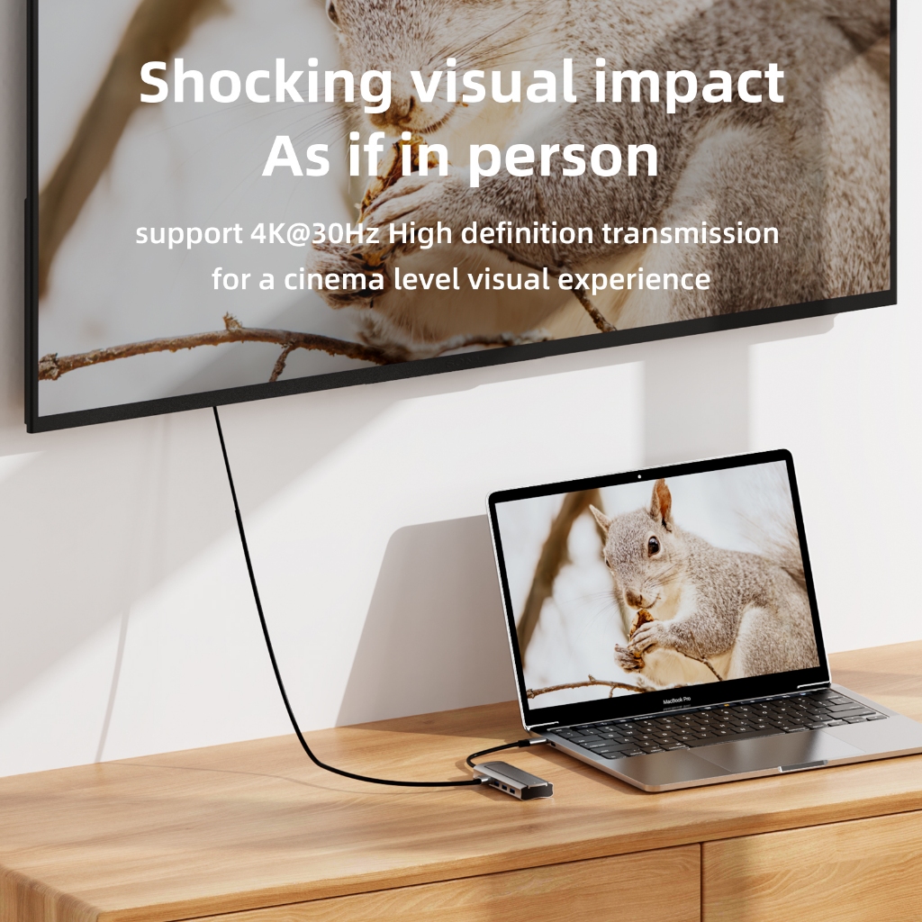 MÔ TẢ SẢN PHẨM Cổng loại C 11 trong 1: Tương thích HDMI + USB3.0 * 1 + USB2.0 * 3 + PD 87W + TF + SD + 100M RJ45 + AUX +