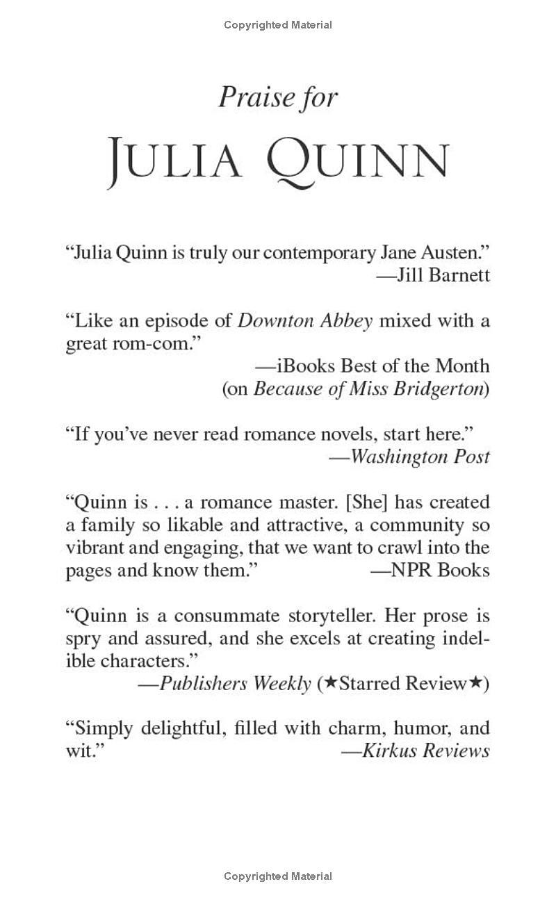 There were Bridgertons before the eight alphabetically named siblings, and in this novel, we go back to where it all began. . .
