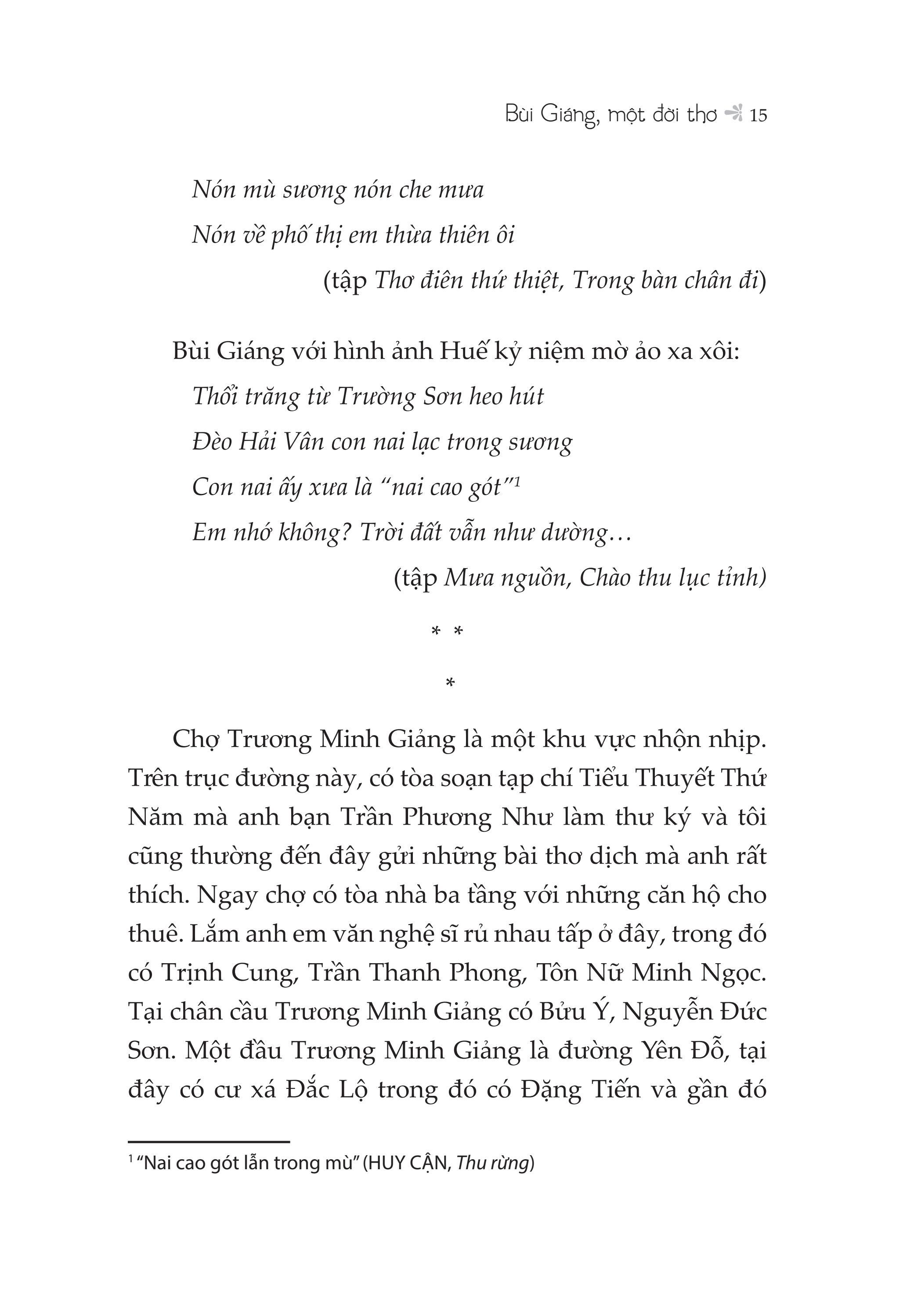 Đây là cuốn sách của nhà văn, dịch giả Bửu Ý, viết về Bùi Giáng, một giọng thơ vô tiền khoáng hậu của văn học Việt Nam thế kỷ XX. Dù viết bao nhiêu về Bùi Giáng, có lẽ cũng là không chính xác hoàn toàn vì ông đã trở thành một hiện tượng, một tượng đài ngôn ngữ, vậy mà qua ngòi bút của Bửu Ý, chúng ta không chỉ thấy Bùi Giáng mà còn thấy cả hơi thở, không khí thời đại mà hai người đã dự phần vào…