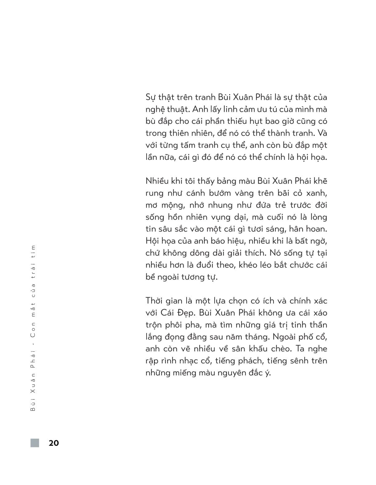 Quyển sách mà bạn đang cầm trên tay là một tuyển tập bao gồm 25 bài viết về hội họa Bùi Xuân Phái của 14 nhà nghiên cứu và phê bình, nhà sưu tập tranh, văn nghệ sĩ nổi tiếng trong nước và nước ngoài. Mỗi người nhìn tranh ông và cuộc đời ông dưới một góc độ khác nhau, đem lại cho chúng ta những cảm nhận và hiểu biết rất mới mẻ và phong phú.