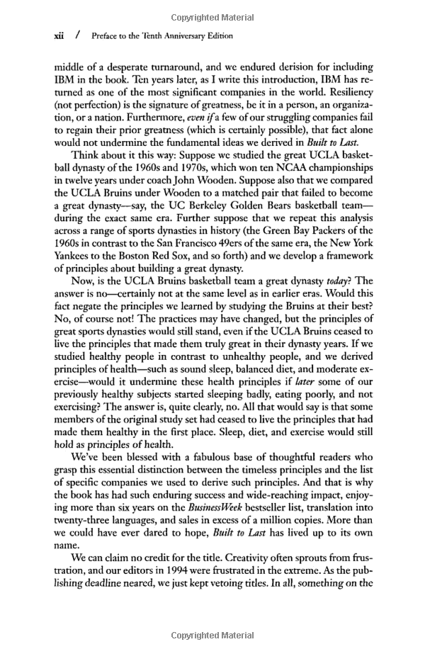 "This is not a book about charismatic visionary leaders. It is not about visionary product concepts or visionary products or visionary market insights. Nor is it about just having a corporate vision. This is a