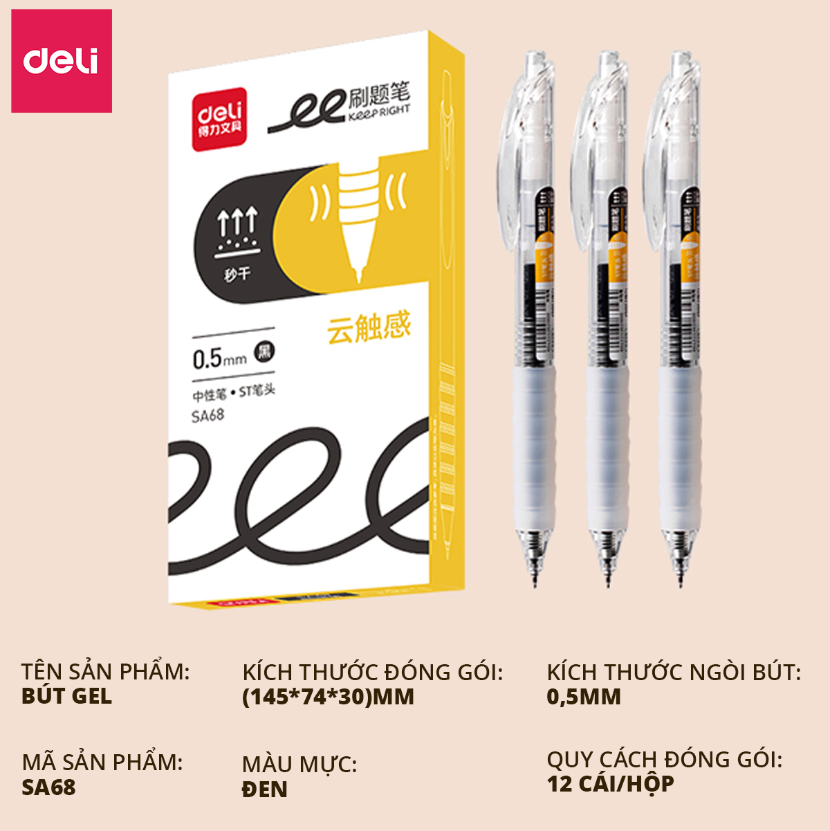 ✨Bút Bi Nước Mực Gel Bấm Deli 0.5mm Đệm Tay Siêu Êm Ái Xinh Xắn Nhanh Khô Viết Đều Trơn Tru Nhiều Mực Có Ngòi Thay Thế