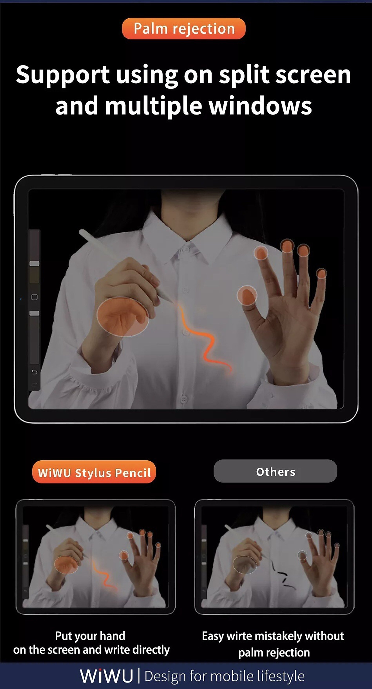 Bút cảm ứng WIWU Stylus A01 cho iPad Pro, Air, Mini đời 2018 trở lên Công nghệ chống tì tay toàn màn hình WIWU Stylus A01 hỗ trợ tính năng chống tì tay, cho phép