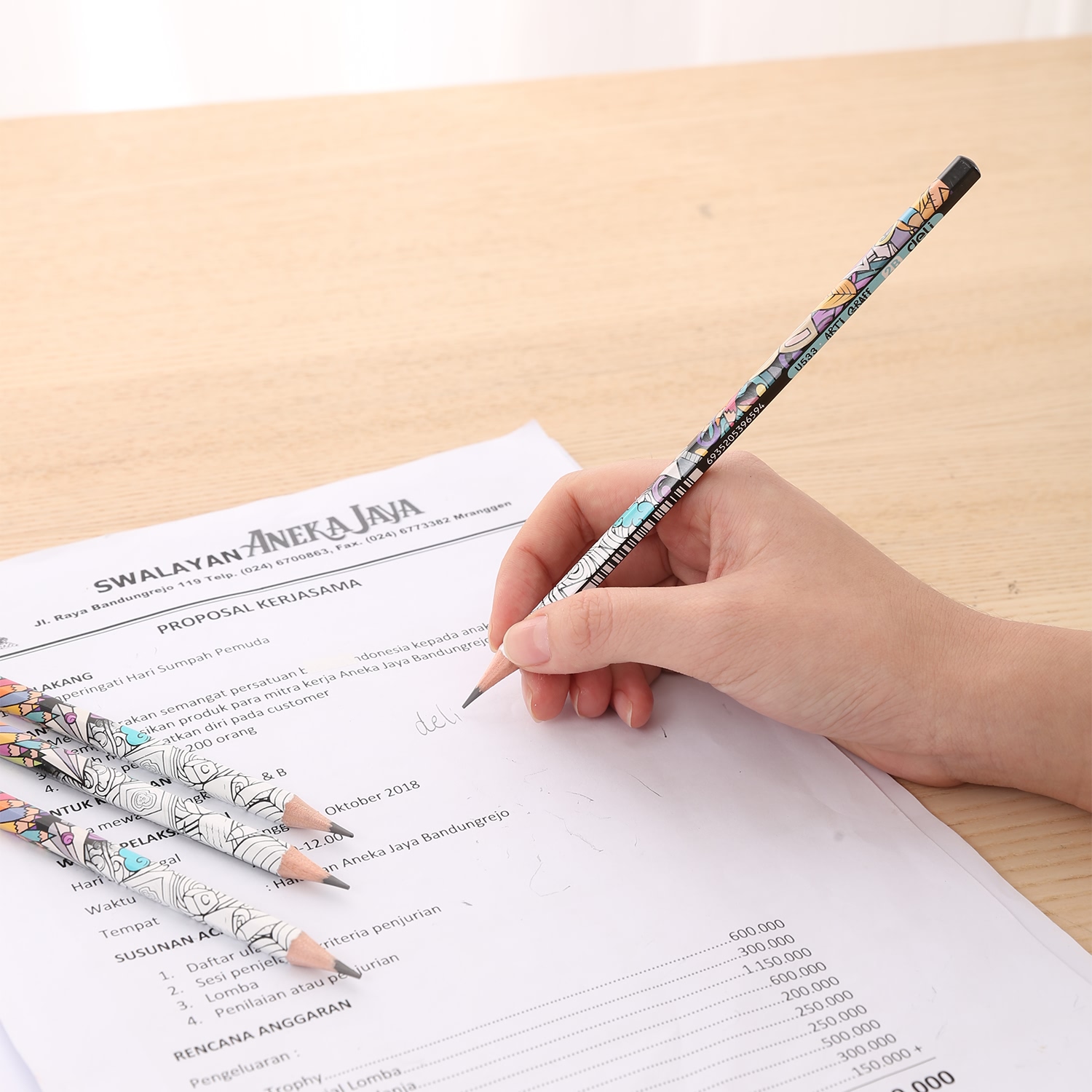 - Ruột bút chì chất lượng, gỗ mềm dễ chuốt, thân in hình bắt mắt, có gôm tiện dụng. - Thân tam giác dễ cầm chắc chắn, chì chuẩn 2B, đậm, rõ nét. - An