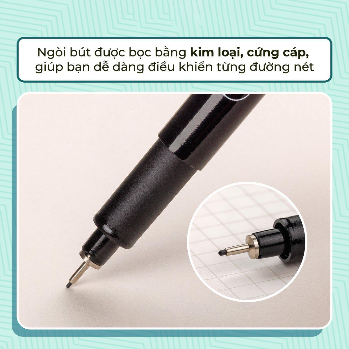 - Sản phẩm có ngòi rất mảnh nên cho nét vẽ đẹp vô cùng. Mực bút ra cũng rất đều, nhanh khô, không bị lem, không bị tắc hay ứ đọng mực khi dùng lâu như một số loại bút khác.