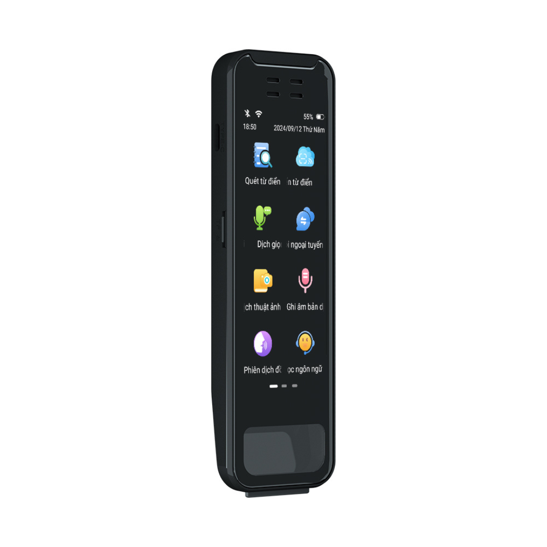 - Phím cứng cạnh máy: Phù hợp cho các tình huống như du lịch, trao đổi nhanh hoặc gọi điện thoại, nơi chỉ một người chủ động nhấn phím để dịch cho cả hai bên.