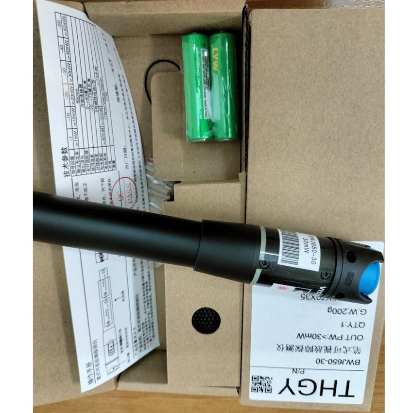 Bút test sợi quang quang BWJ650-30 (hay còn gọi là bút soi quang, đèn soi cáp quang,…) là dụng cụ phát hiện lỗi và đo thông sợi quang bằng ánh sáng nhìn thấy, với công suất phát lên tới >30mW cho phép bạn kiểm tra sợi cáp quang tối đa lên tới 30Km .
