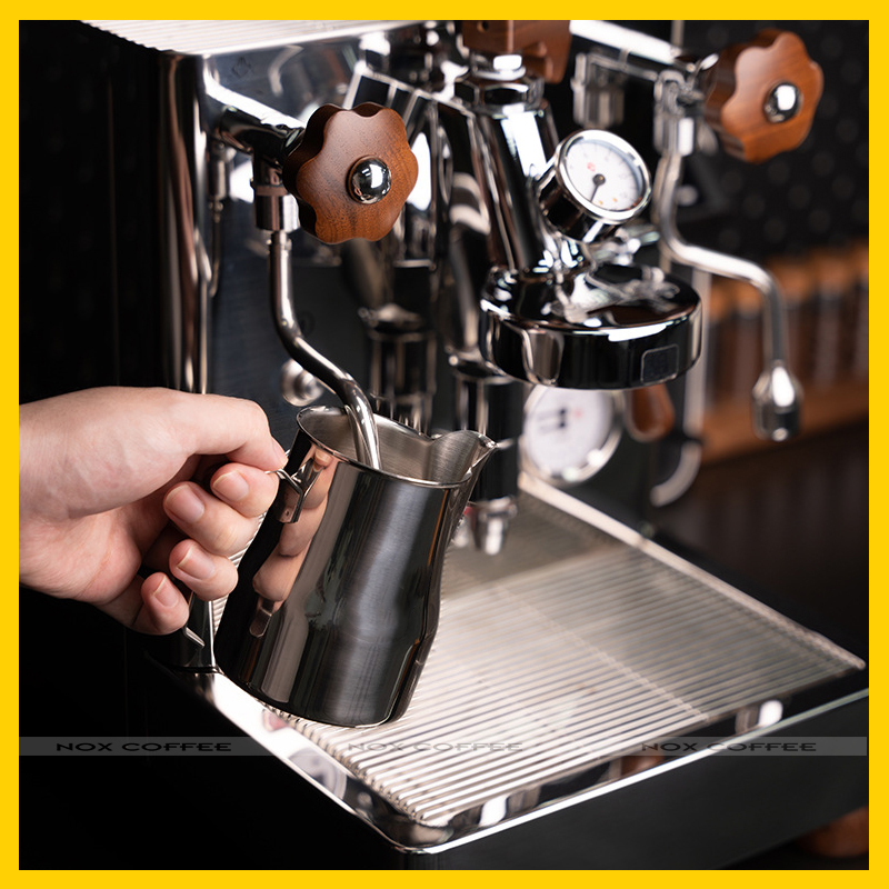 Mũi ca có thiết kế miệng tròn, hơi cong, phủ lớp chống dính giúp bạn có thể vẽ ra những nét rõ và đều của những hình tuylip, trái , bạn có thể cho ra nét từ dưới đáy hoặc những vị trí khá xa thành ly, giúp tối ưu hóa hầu hết các nét vẽ, điều mà những ca cổ điển khó có thể làm được. Không nhưng thế, bên trong ca được thiết kế rãnh chuyển hướng với tỷ lệ chiều dài và chiều rộng rãnh dẫn được tính toán phù hợp giúp giúp bọt sữa được thoát ra đồng đều khi vẽ hình.