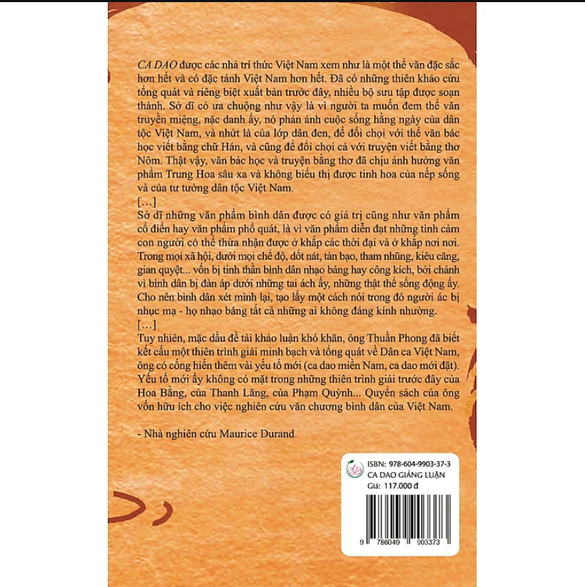 Mua tại TiktokCa dao gồm đủ ba tánh cách dân tộc, đại chúng và khoa học, là ba đức tánh tất yếu của một nền học thuật chơn chánh, tự đặt lấy nhiệm vụ phụng sự dân tộc, nên trải qua một cuộc hưng vong, bao nhiều triều đại và thế hệ đã qua, vẫn còn sống mãi cùng dân tộc, phản chiếu đức tánh của dân tộc một cách trung thành. (trích)