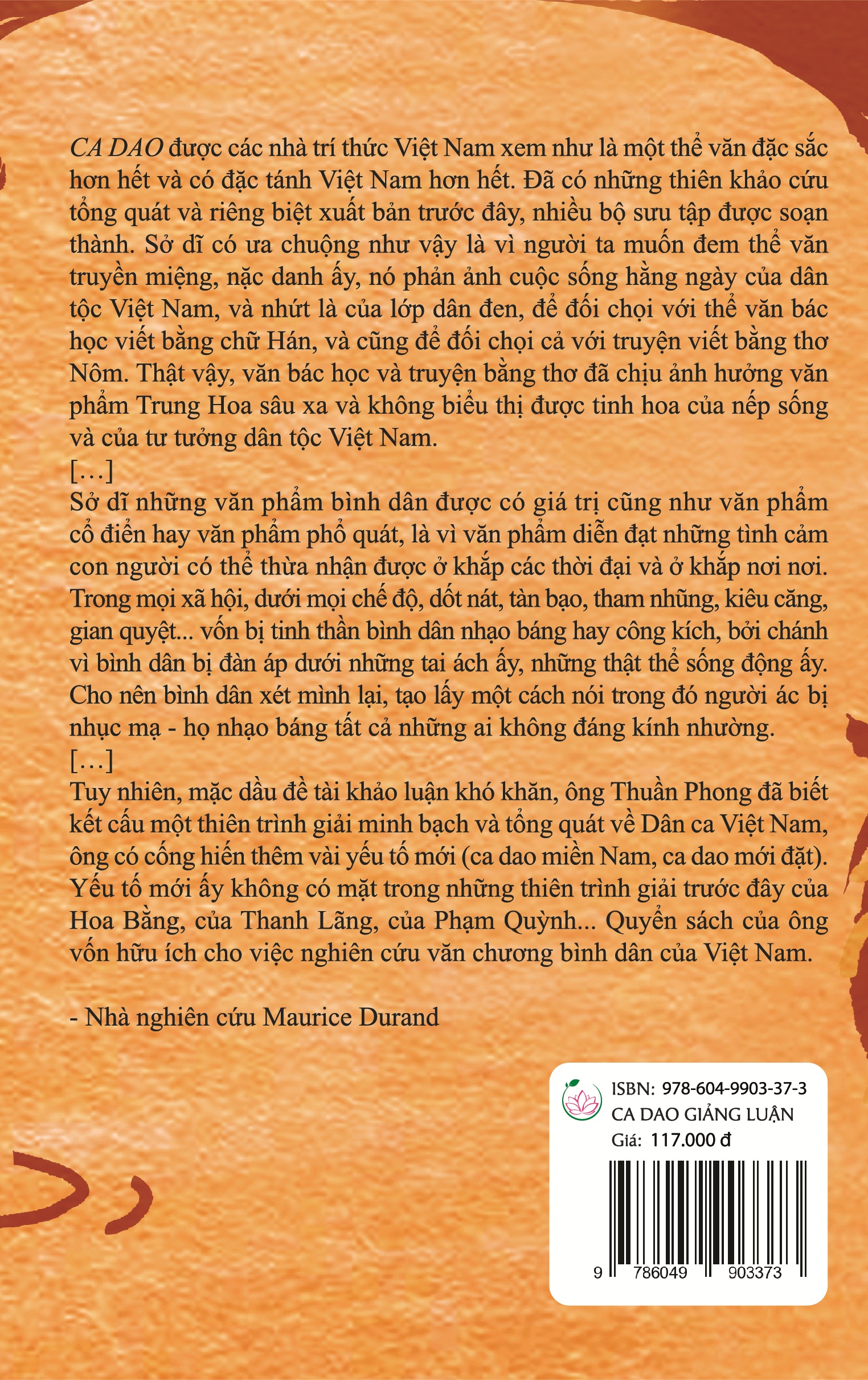 Mua tại TiktokCa dao gồm đủ ba tánh cách dân tộc, đại chúng và khoa học, là ba đức tánh tất yếu của một nền học thuật chơn chánh, tự đặt lấy nhiệm vụ phụng sự dân tộc, nên trải qua một cuộc hưng vong, bao nhiều triều đại và thế hệ đã qua, vẫn còn sống mãi cùng dân tộc, phản chiếu đức tánh của dân tộc một cách trung thành. (trích)