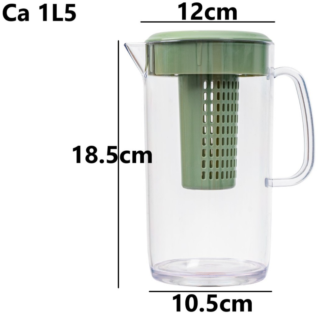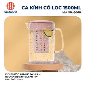 Ca kính có lọc 6068 thiết kế dễ cầm nắm, dung tích lên đến 1500ml thích hợp để đựng nước cho cả ngày. Đặc biệt bên trong ca có lõi lọc giúp pha trà tiện lợi.