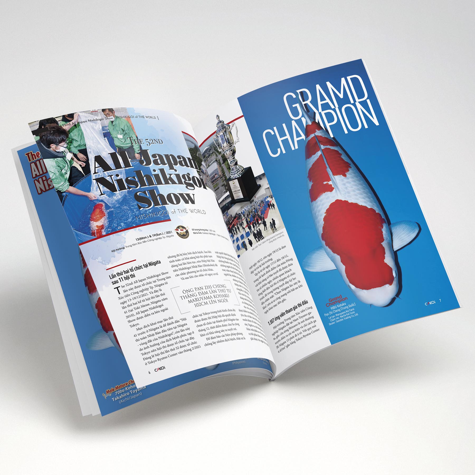 “Cá Koi Vietnam – Guide to Nishikigoi Life” là phiên bản tiếng Việt của Gekkan Nishikigoi (Koi Magazine do Shinkokai Nhật Bản phát hành), phát hành hàng Quý tại Việt Nam. Có trong tay quyển