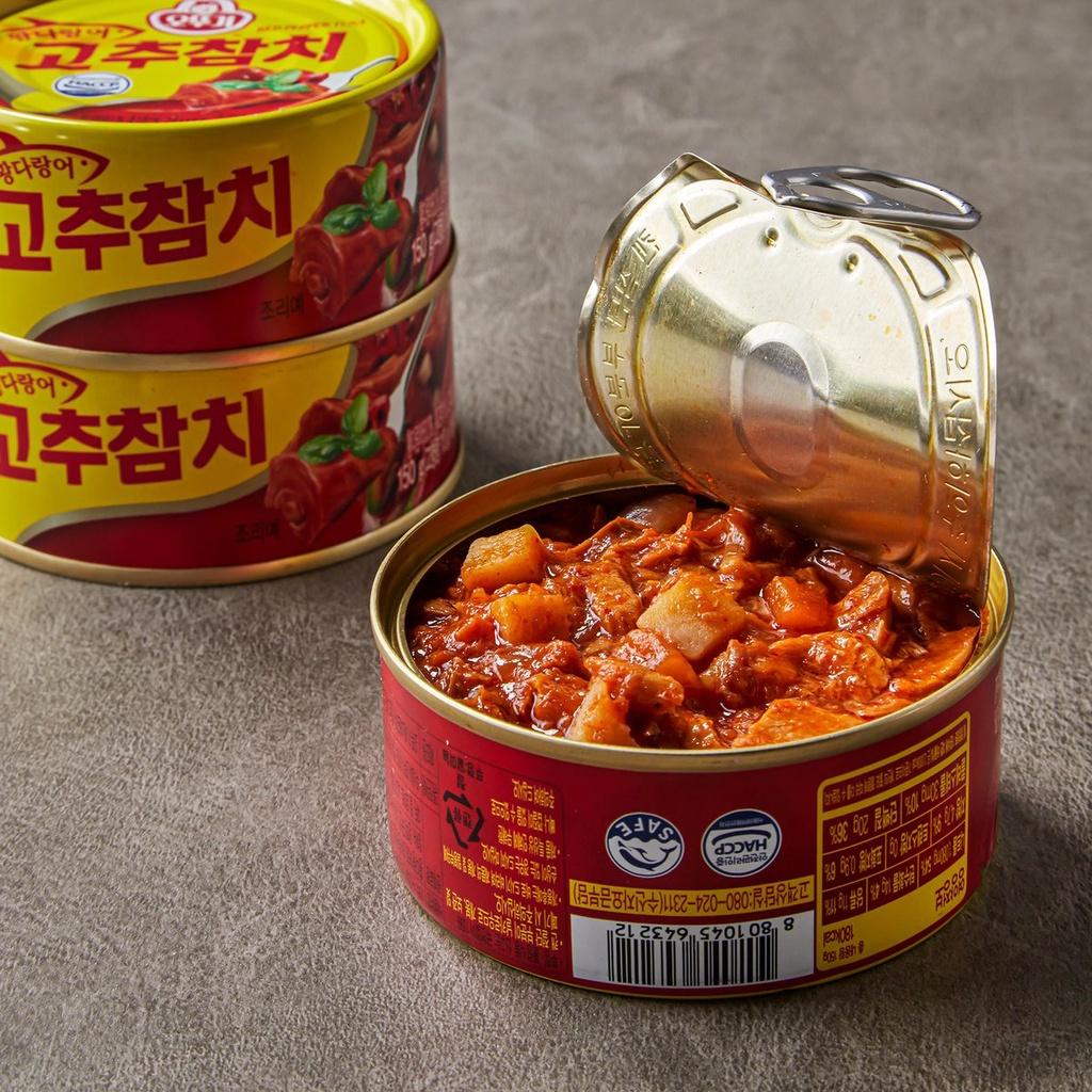 - Cá Ngừ Sốt Ớt Ottogi (100g) được chế biến từ cá ngừ, sốt ớt, nước, dầu đậu nành, hành tây, bắp cải, cà chua cô đặc, tiêu đen… Cá ngừ sốt ớt Ottogi không