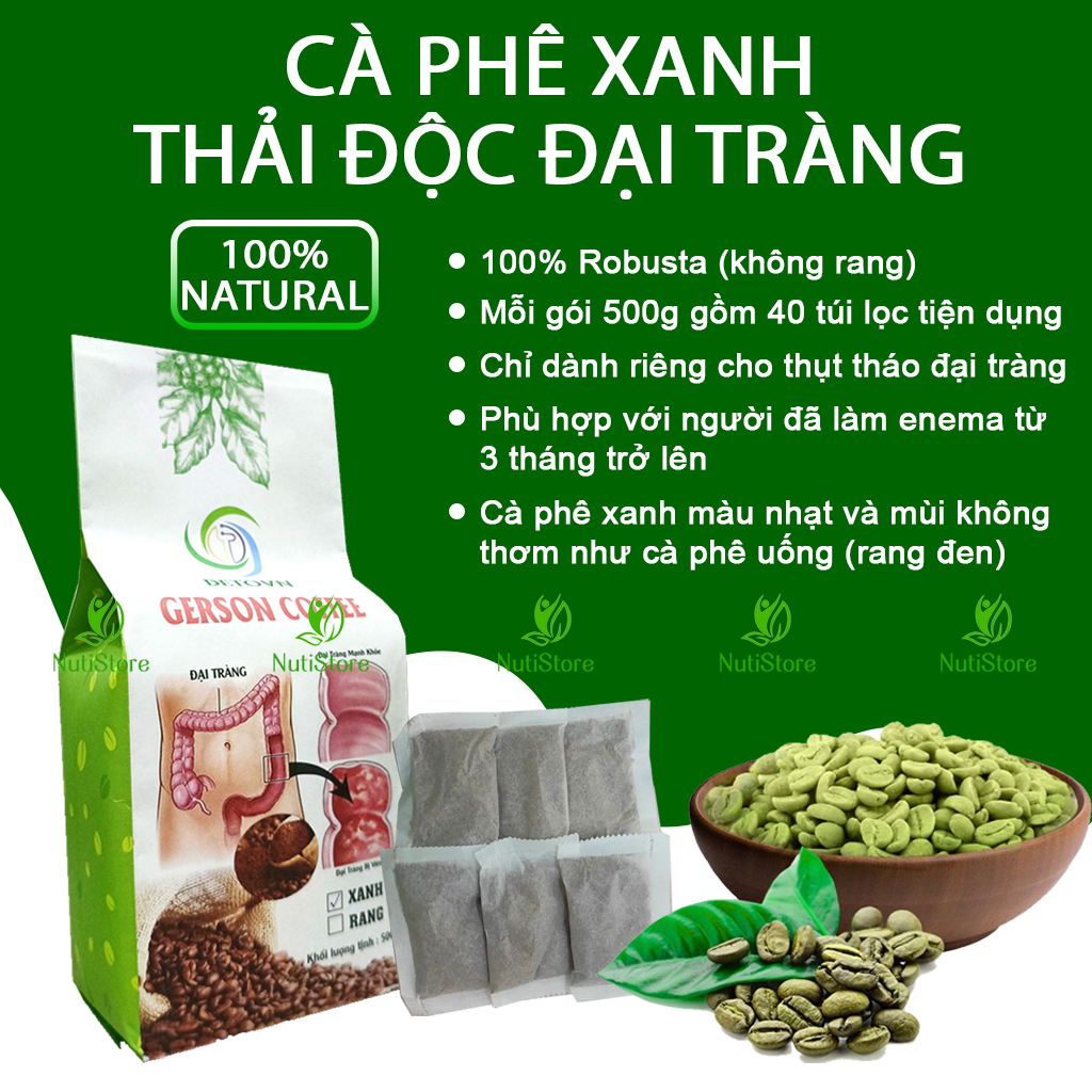 ✨Cà phê xanh thải độc đại tràng (không rang), cà phê Robusta, cà phê enema mỗi gói 500g gồm 40 túi lọc tiện dụng