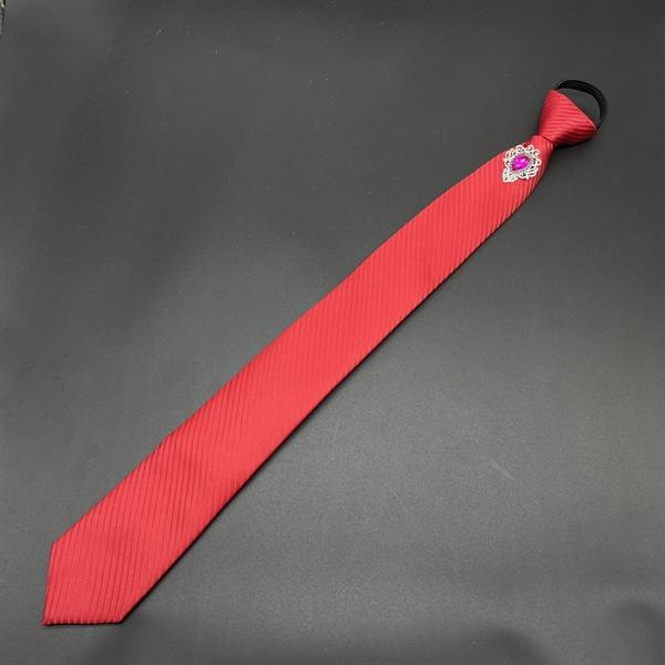 Cà vạt 6cm màu đỏ kẻ đơn giản thắt sẵn đính đá hồng sang trọngCà vạt 6cm màu đỏ kẻ đơn giản thắt sẵn đính đá hồng sang trọng