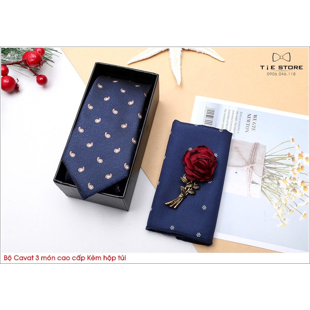 Cavat nam bản 8cm lót silk cao cấp nguyên hộp kèm khăn và khuy măng sét Giangpkc Qtp Sản phẩm cao cấp nguyên hộp quà tặng bản 8cm thích hợp cho trung niên - công