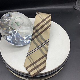 Cà vạt nam trung tuổi bản 8cm tự thắt nâu kẻ lịch lãm Giangpkc chất liệu sp : dệt kim 3 lớp dầy kích cỡ 145 cm x8cm dùng cho người trung tuổi công dụng