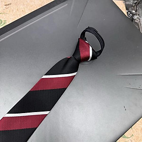 ✨Cà vạt nam mẫu thắt sẵn dây kéo bản nhỏ 6cm màu đen kẻ đỏ
