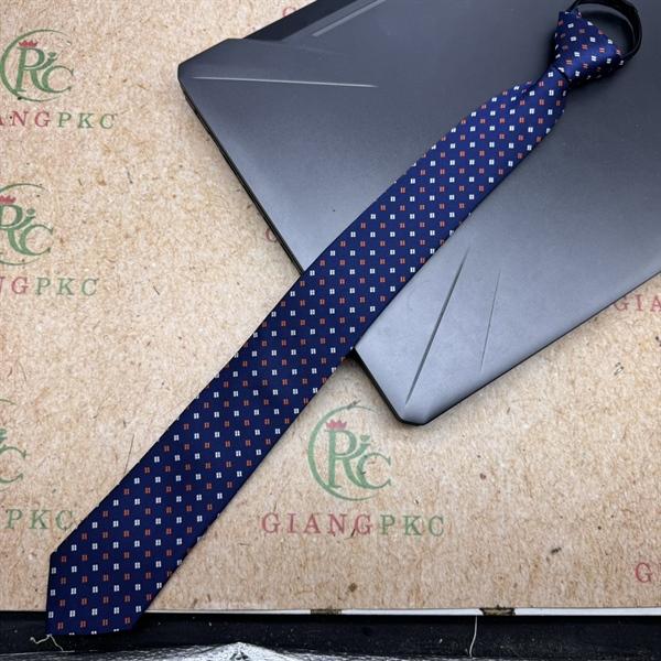 ✨Cà vạt nam mẫu thắt sẵn dây kéo bản nhỏ 6cm mẫu xanh đen chấm trắng cam