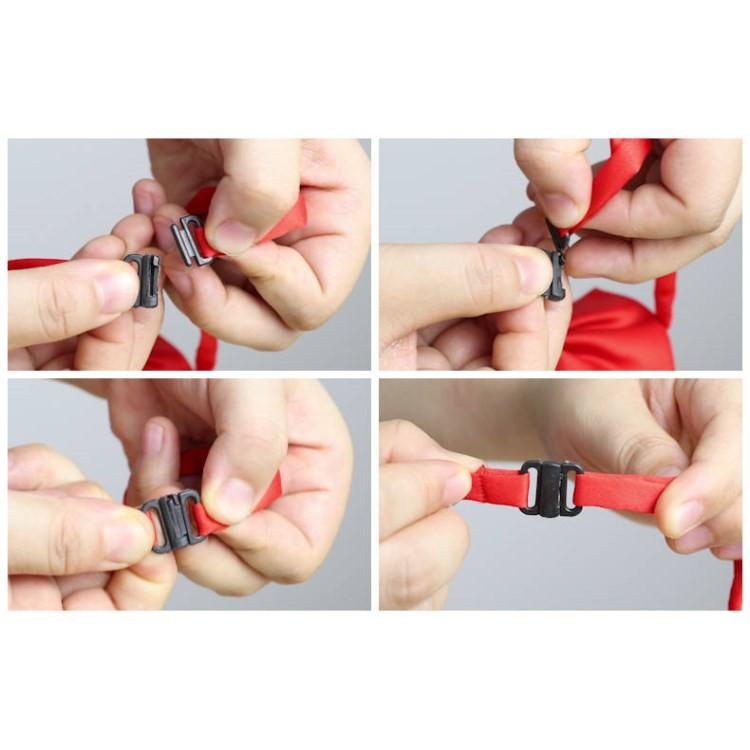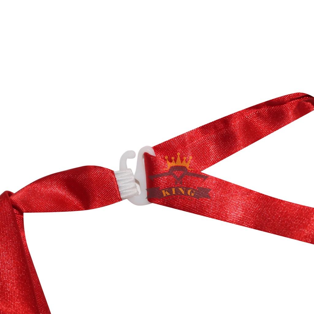 Thông tin sản phẩm Chất liệu gồm 1. Vải Silk Lụa 100% 2. Miếng lót bên trong là vải không dệt, from cứng 3. Dây đeo có móc cài nhựa Kích thước nơ đeo cổ