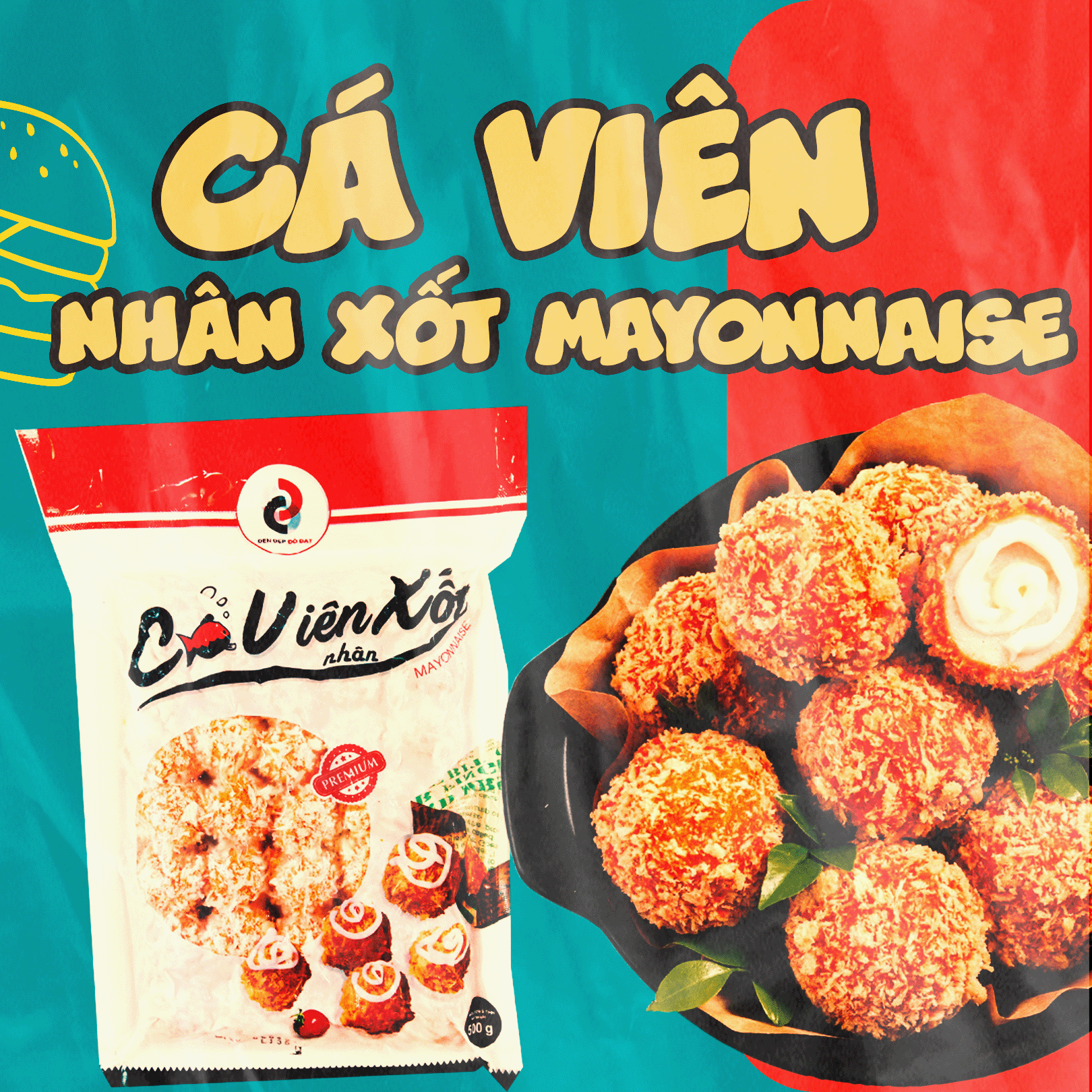 ✨Cá Viên Nhân Xốt Mayonnaise Gói 500gr 24 Viên / 35 Viên - Thương Hiệu Đen Đỏ
