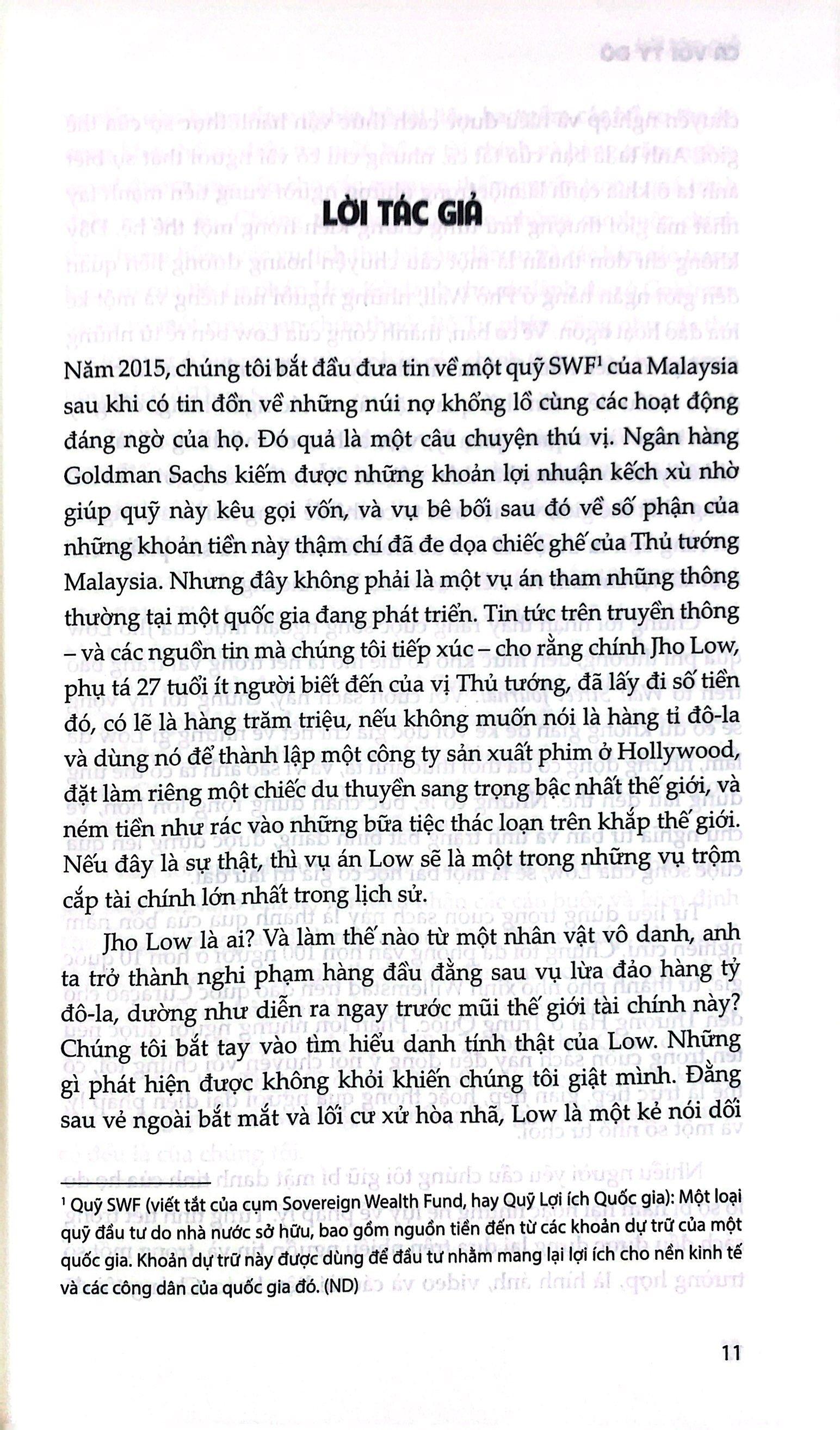 Cuốn sách là hành trình của Jho Low, phụ tá 27 tuổi bí ẩn của thủ tướng Malaysia - Najib Razak, thực hiện một trong những “vụ trộm lớn nhất trong lịch sử nhân loại”.