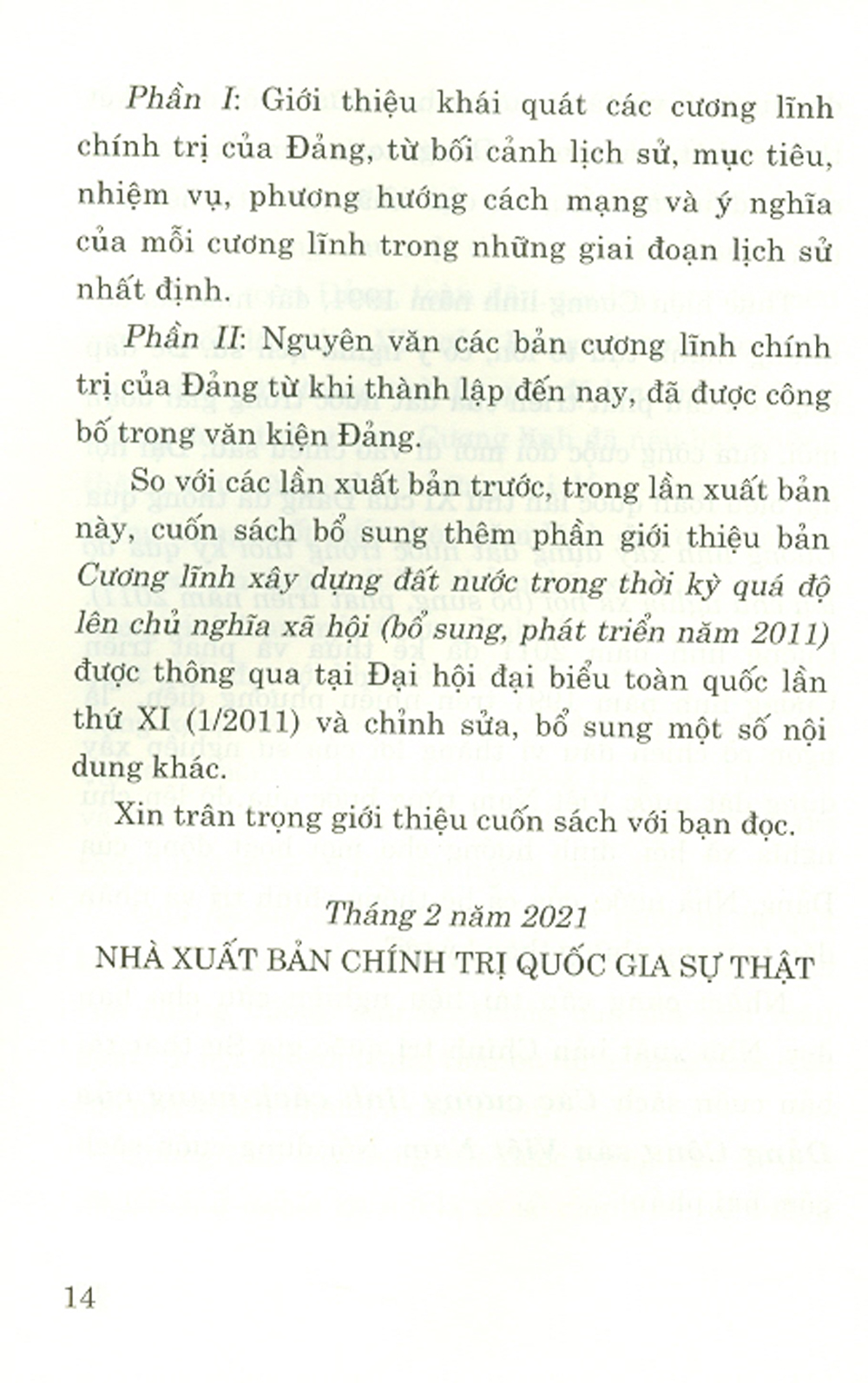 Phần II: Nguyên văn các bản cương lĩnh chính trị của Đảng từ khi thành lập đến nay, đã được công bố trong văn kiện Đảng.
