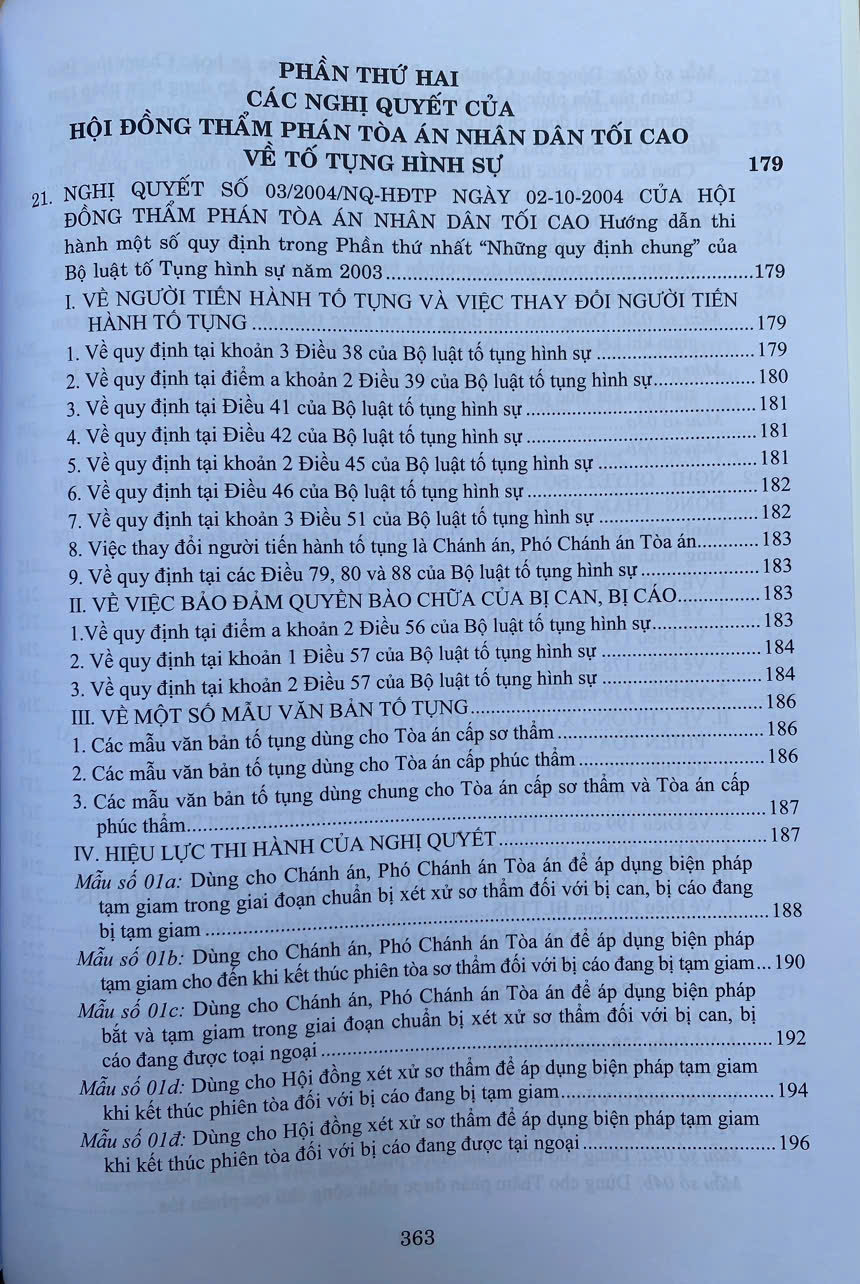 Phần thứ hai. Hệ thống các Nghị quyết của Hội đồng Thẩm phán Tòa án nhân dân tối cao về tố tụng hình sự
