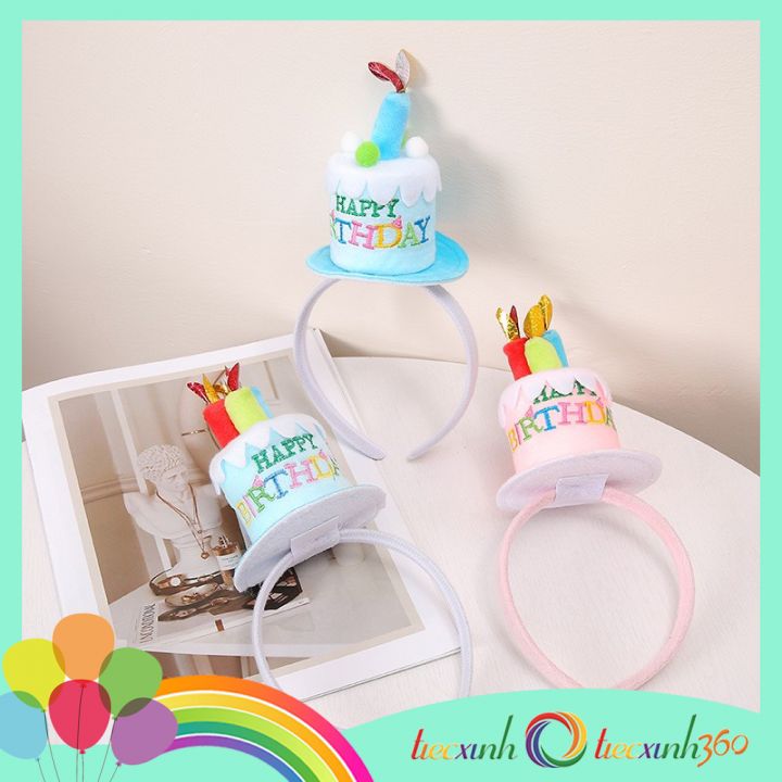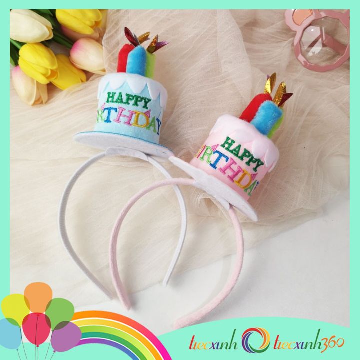 Mua tại TiktokCài tóc Happy Birthday bánh sinh nhật có nến chữ - Phụ kiện sinh nhật