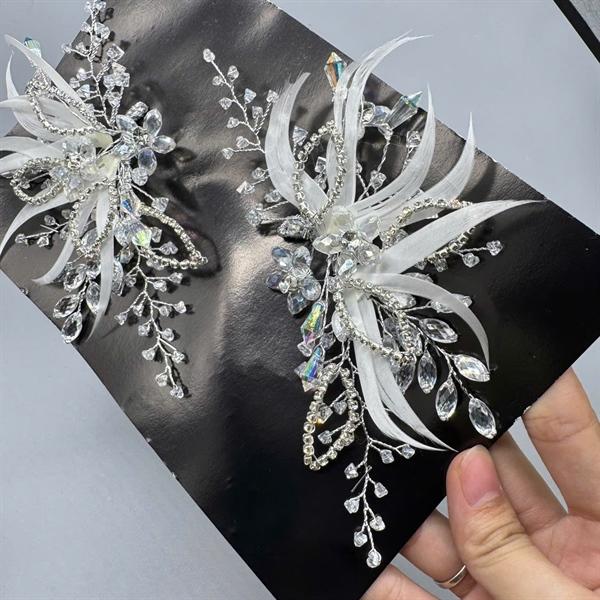 Bộ đôi cài tóc cô dâu lá đính hạt pha lê mẫu 1/2021 giangpkc sp220639 ” Trắng