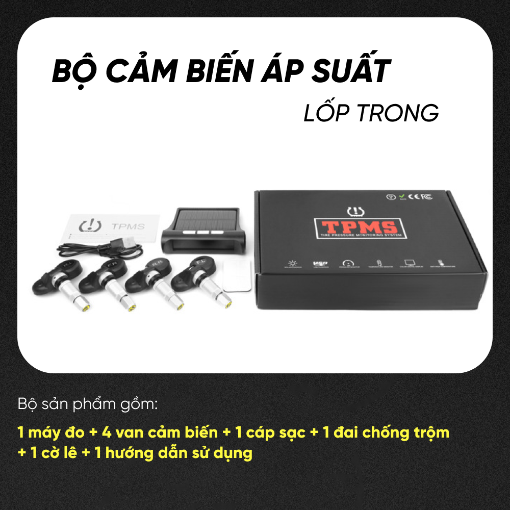 Kiểm soát các vấn đề về lốp luôn được người sử dụng ô tô quan tâm hàng đầu. Còn gì tuyệt vời hơn khi bạn chỉ việc ngồi trong xe mà vẫn hoàn toàn có thể kiểm soát được áp suất và nhiệt độ từng lốp xe của mình mà không phải trực tiếp ra ngoài tận mắt kiểm tra nữa! Được sản xuất trên công nghệ tiên tiến nhất , Cảm biến áp suất lốp ô tô TPMS màn hình led màu thông minh theo dõi từng thay đổi nhỏ nhất của nhiệt độ và áp suất lốp, có cảnh báo bằng âm thanh và hình ảnh tới bạn mỗi khi áp suất lốp quá thấp 3,3 Bar hoặc nhiệt độ lốp > 70 độ C.
