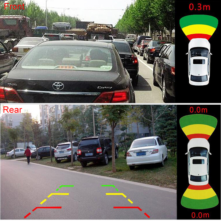 - Ưu điểm của xe có cảm biến lùi là giúp hạn chế các điểm mù và góc chết mà bạn không thể thấy được khi ngồi trên ô tô, từ đó hạn chế tối đa những vụ va chạm không đáng có. Hiển thị khoảng cách và hình ảnh chướng ngại vật phía trước và phía sau trên màn hình xe ô tô (khách hàng phải lắp thêm camera trước hoặc sau). Thông số kỹ thuật sản phẩm