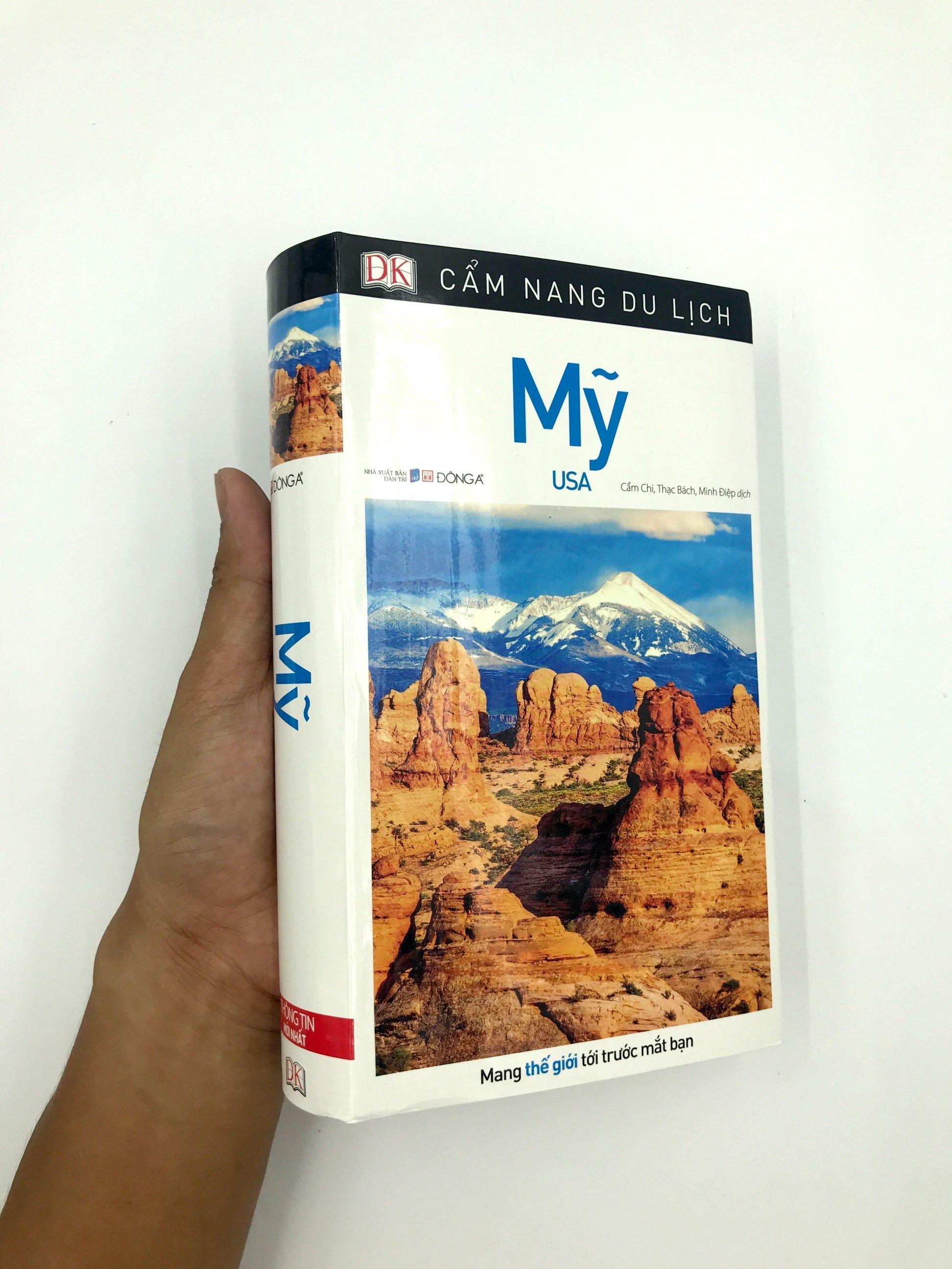 Mua tại TiktokCẩm Nang Du Lịch - Mỹ Cuốn cẩm nang này sẽ giúp bạn có được trải nghiệm tuyệt vời nhất trong chuyến du lịch nước Mỹ, với hàng loạt thông tin thiết thực và gợi ý hữu ích từ các chuyên gia. Phần Sơ lược về nước Mỹ cho bạn cái nhìn tổng thể về bối cảnh văn hóa và lịch sử của đất nước này. Các chương tiếp sẽ giới thiệu các thắng cảnh quan trọng, các điểm đến du lịch nổi tiếng tại 50 tiểu bang nước Mỹ, kèm theo bản đồ và hình ảnh minh họa. Hướng dẫn chi tiết về các nhà hàng và khách sạn nên đến nằm ở phần Hành trang du khách. Phần Những điều cần biết cung cấp những thông tin thiết thực về mọi vấn đề từ đi lại, giao thông, visa cho đến an toàn cá nhân đối với du khách nước ngoài.