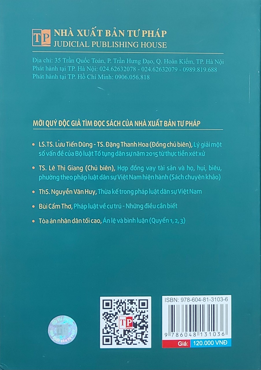 Pháp luật về thừa kế và thực tiễn giải quyết tranh chấp(Tái bản lần thứ nhất, có chỉnh sửa bổ sung theo bộ luật dân sự 2015)Tác giả: PGS. TS. Phạn Văn Tuyết, TS. Lê Kim GiangNXB: Tư PhápXuất bản: tháng