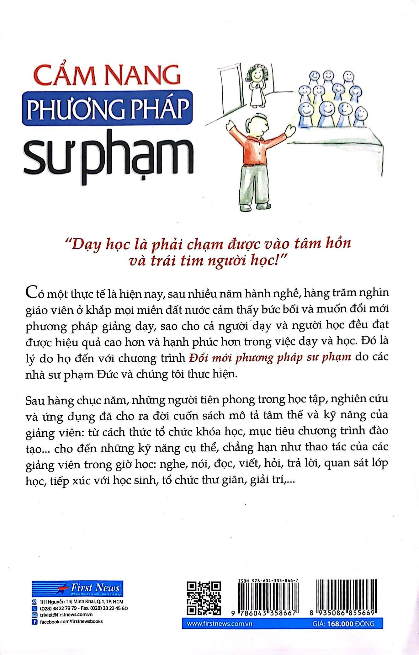 Do đó, “Cẩm nang phương pháp sư phạm” sẽ không có những lập luận thiên về khoa học hàn lâm, mà bạn sẽ hài lòng với các chỉ dẫn thiết thực, dễ hiểu và dễ áp dụng. Bạn sẽ biết cách mở đầu bài giảng như thế nào để thu hút sự chú ý của người học ngay từ những giây phút đầu tiên của giờ học; cách neo chốt kiến thức giúp người học nhớ được bài lâu hơn; cách lập kế hoạch bài giảng chi tiết sao cho phù hợp giữa nội dung - phương pháp - phương tiện và thời gian cho một tiết giảng/bài giảng; cách trực quan hóa bài giảng để cho giờ học trở nên sinh động hơn, hiệu quả hơ