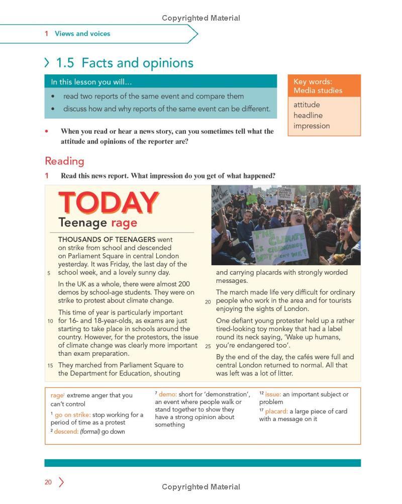 With international cross-curricular topics, from responsible tourism and wellbeing to endangered species and social media, the series helps you develop the skills to study across the curriculum in English. Packed with literature and oracy activities, the course helps you become confident communicators. Step-by-step writing activities with models support you to develop your writing, while tip boxes help with language and skills. Each unit ends with a 'Project Challenge' where you will work together on cross-curricular projects like designing a technology timeline, developing collaboration and critical thinking skills.