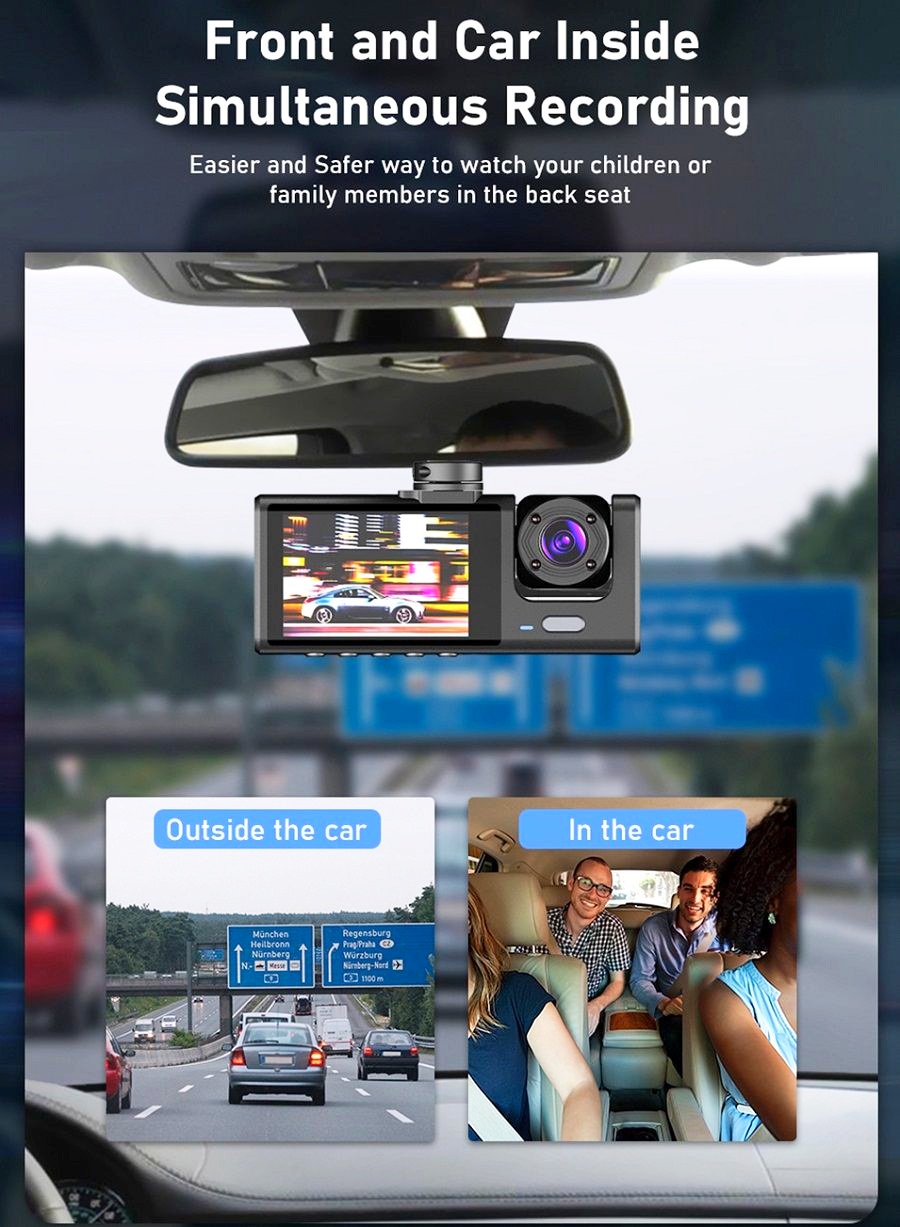 - Thấu kính góc rộng không điểm mù ghi lại mọi chi tiết xung quanh, lý tưởng cho xe taxi, xe dịch vụ cầnghi lại phong cảnh và những hoạt động trước và bên trong xe