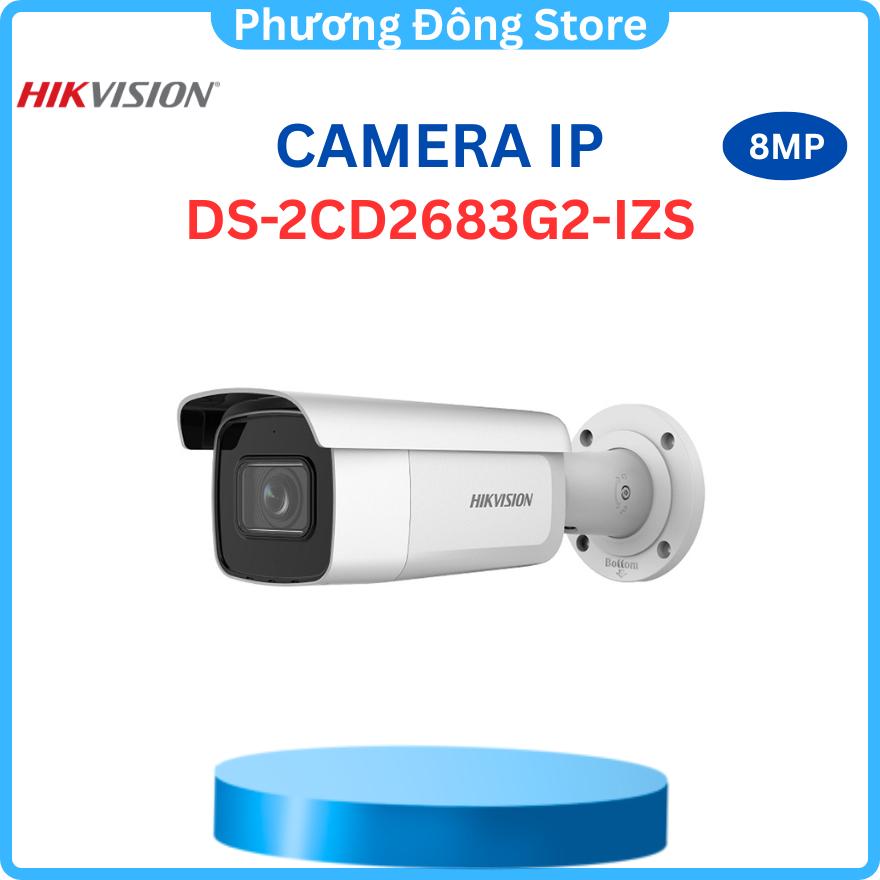 1/ Camera IP hồng ngoại 8.0 Megapixel HIKVISION DS-2CD2683G2-IZS - Camera IP thân trụ dòng AcuSense 8MP sử dụng ngoài trời, hỗ trợ nhiều tính năng thông minh. - Cảm biến hình ảnh: 1/2.8-inch Progressive